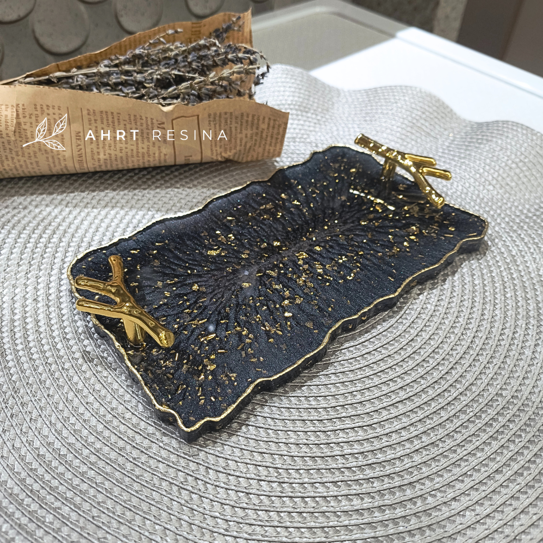 Bandeja geodo em resina com alça galho de árvore. O produto pode ser personalizado em outras cores (prazo de 10 dias úteis após a aprovação do pagamento). Tamanho aproximado: 20 cm largura x 12 cm de profundidade.