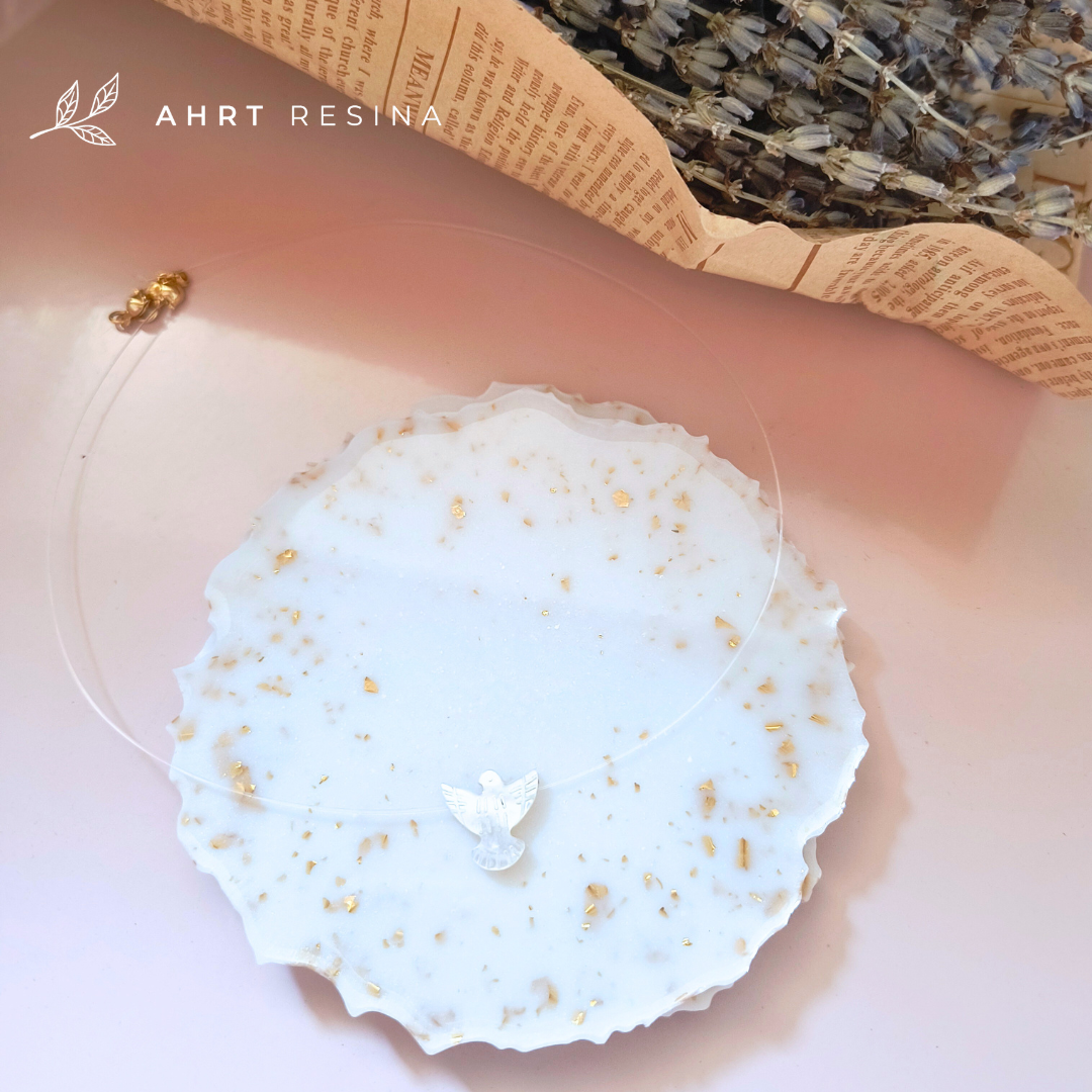 *A resina é um material polimérico que, ao curar, pode apresentar pequenas bolhas de ar ou leve opacidade. Essas imperfeições são resultado de fatores como a mistura dos componentes, a temperatura do ambiente, umidade ou até mesmo a forma como a peça foi moldada. Embora existam técnicas para minimizar essas ocorrências, elas fazem parte do processo de trabalho com a resina e não comprometem a qualidade e a durabilidade da peça. Essas pequenas variações fazem parte do processo artístico e contribuem para a singularidade de cada peça, evidenciando a natureza handmade.