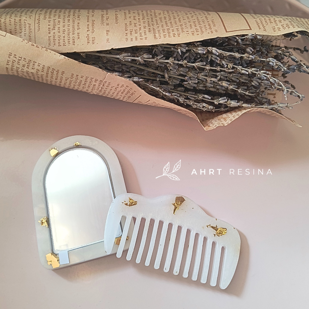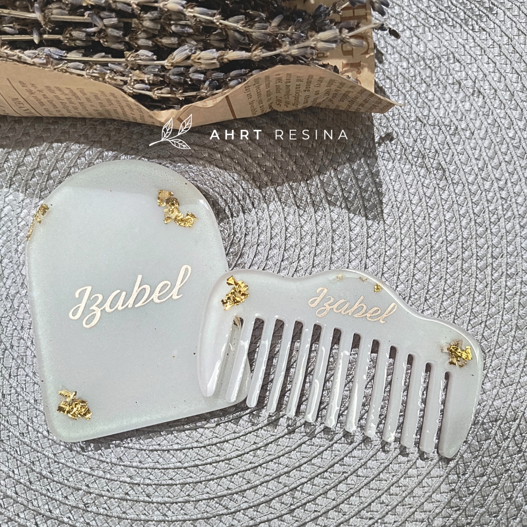 Espelho + pente em resina personalizado com inicial, nome ou logo de empresa para brinde corporativo. O produto pode ser personalizado em outras cores (prazo de 10 dias úteis após a aprovação do pagamento). Tamanho aproximado do espelho: 6,3 cm largura x 8,5 cm de profundidade. Tamanho aproximado do pente: 9 cm largura x 5 cm de profundidade.